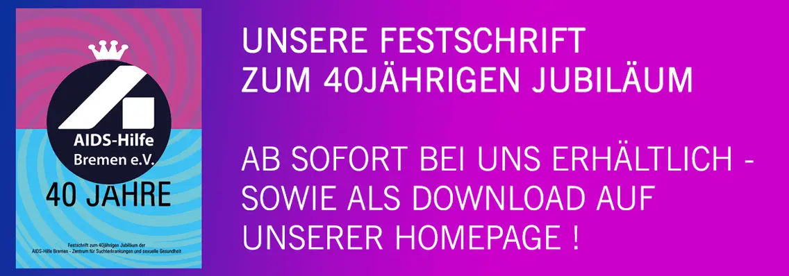 Herzlich willkommen im Zentrum für Suchterkrankungen und sexuelle Gesundheit der AIDS-Hilfe Bremen. Hier erhalten Sie Informationen über unsere Arbeit, unsere Angebote und alles Wissenswerte über sexuell übertragbare Krankheiten. Unsere Schnelltest-Angebote finden Sie unter schnelltest-bremen.de. Weitere Kontaktmöglichkeiten finden Sie in der Rubrik "Kontakt/Team".